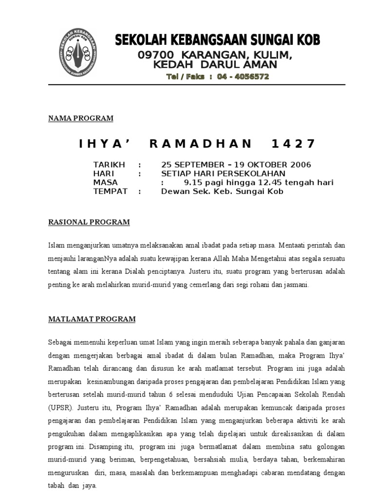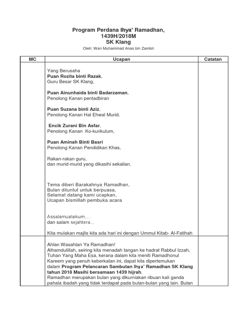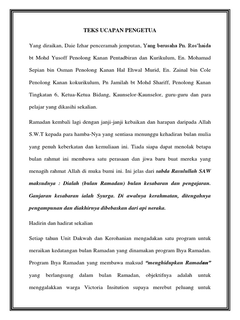 Contoh Teks Ucapan Perasmi Program Ihya Ramadhan By Bio_Dayana257 07 Apr, 2022 Post a Comment Teks Perasmian Program Ihya Ramadan Teks Ucapan Perasmian Majlis Ihya Ramadhan Teks Ucapan Guru Besar Sempena Penutup Ehya Ramadhan Teks Ucapan Guru Besar Sempena Penutup Ehya Ramadhan Share No comments for "Contoh Teks Ucapan Perasmi Program Ihya Ramadhan"